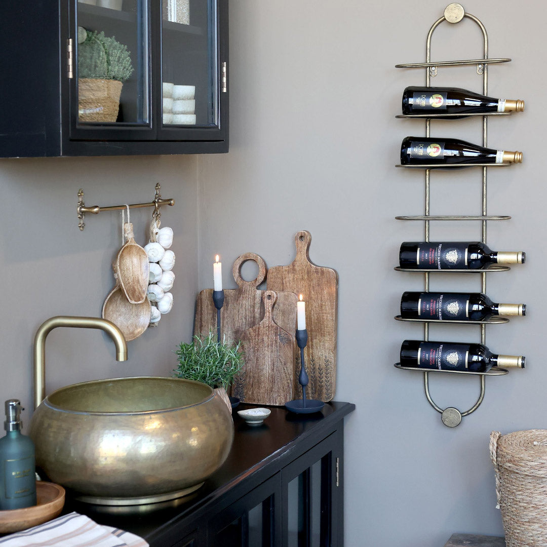 Chic Antique – Wand-Weinregal, H109/L29/B9 cm, Messing