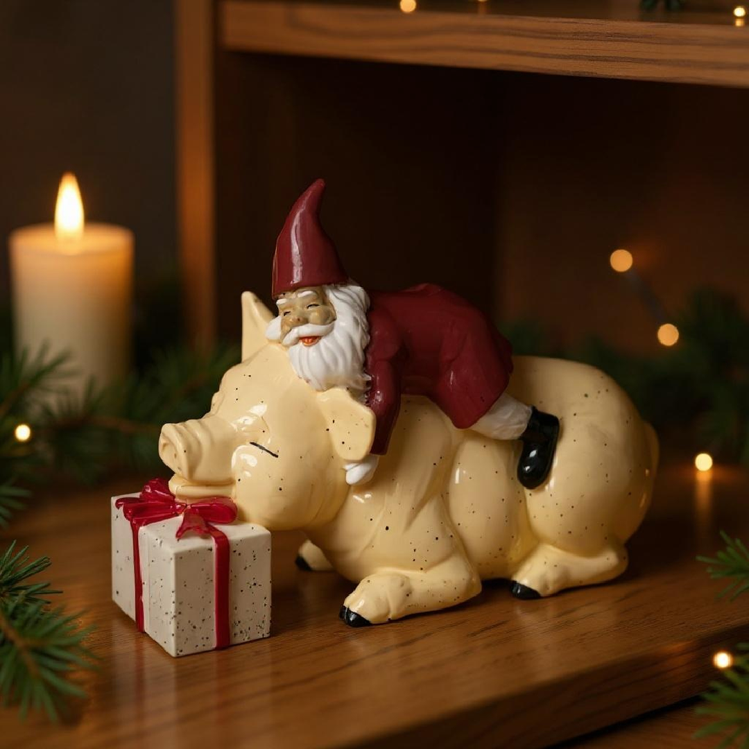 Verleihen Sie Ihrer Weihnachtsdekoration einen humorvollen und zugleich herzerwärmenden Touch mit dieser charmanten Figur von Harvesttime. Der Weihnachtsmann umarmt ein fröhliches Schwein neben einem liebevoll verpackten Geschenk – eine detailreiche Szene, die sofort eine gemütliche Stimmung verbreitet. Perfekt für die Fensterbank, das Regal oder als witziges Highlight auf dem festlich gedeckten Tisch.