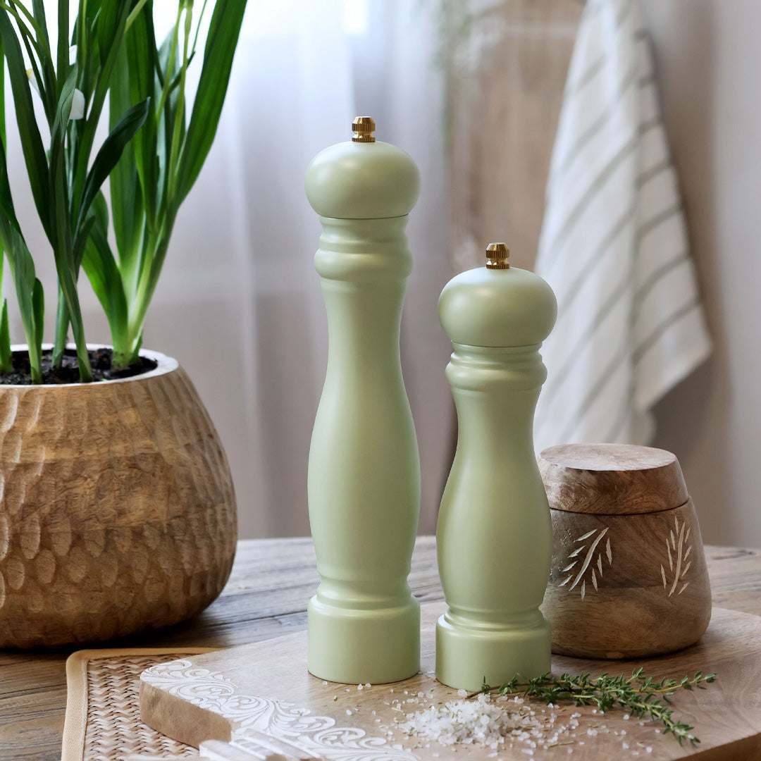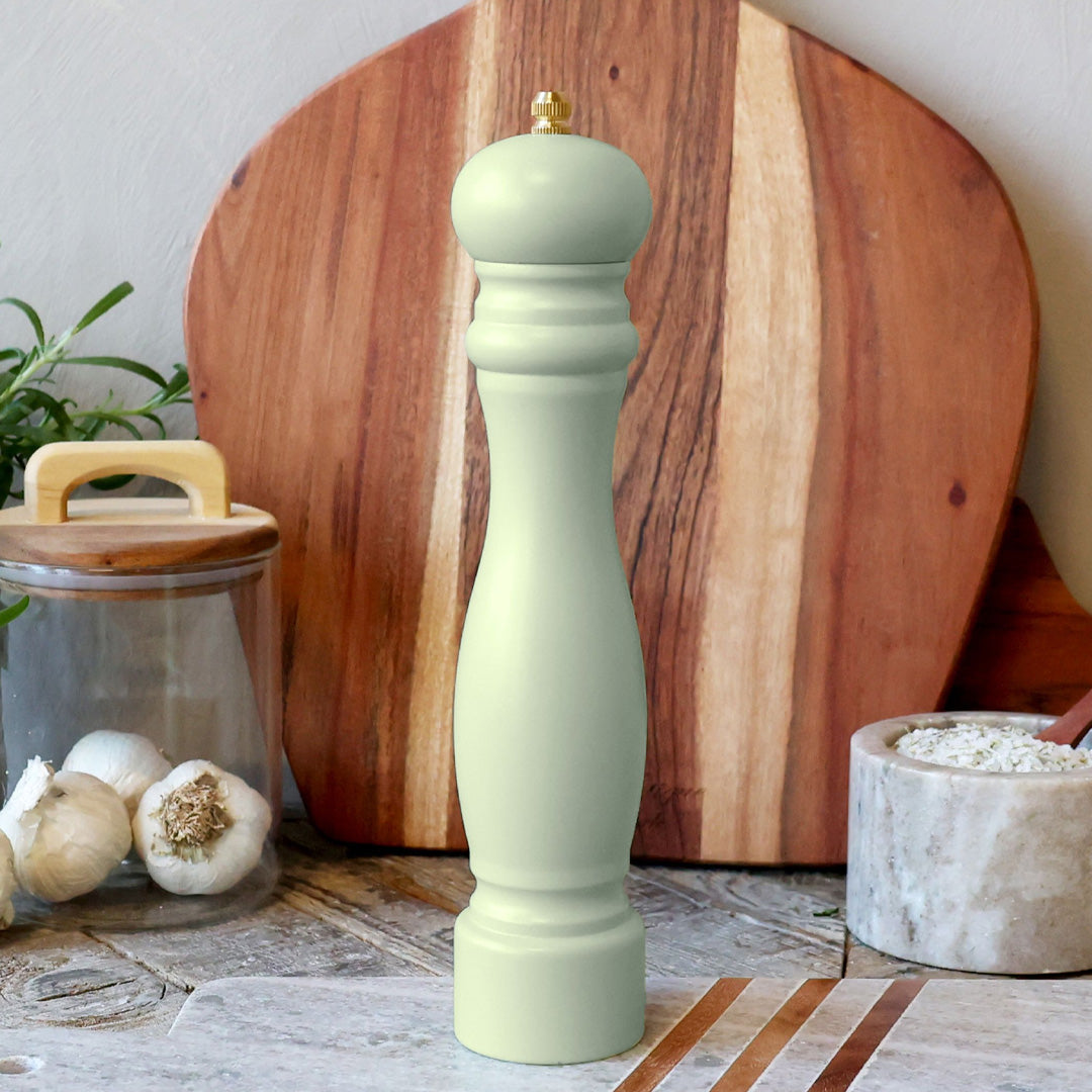 Schaffen Sie ein harmonisches und stilvolles Ambiente in Ihrer Küche mit dieser hohen Salz- und Pfeffermühle von Chic Antique in der beliebten Verte-Grün-Farbe.