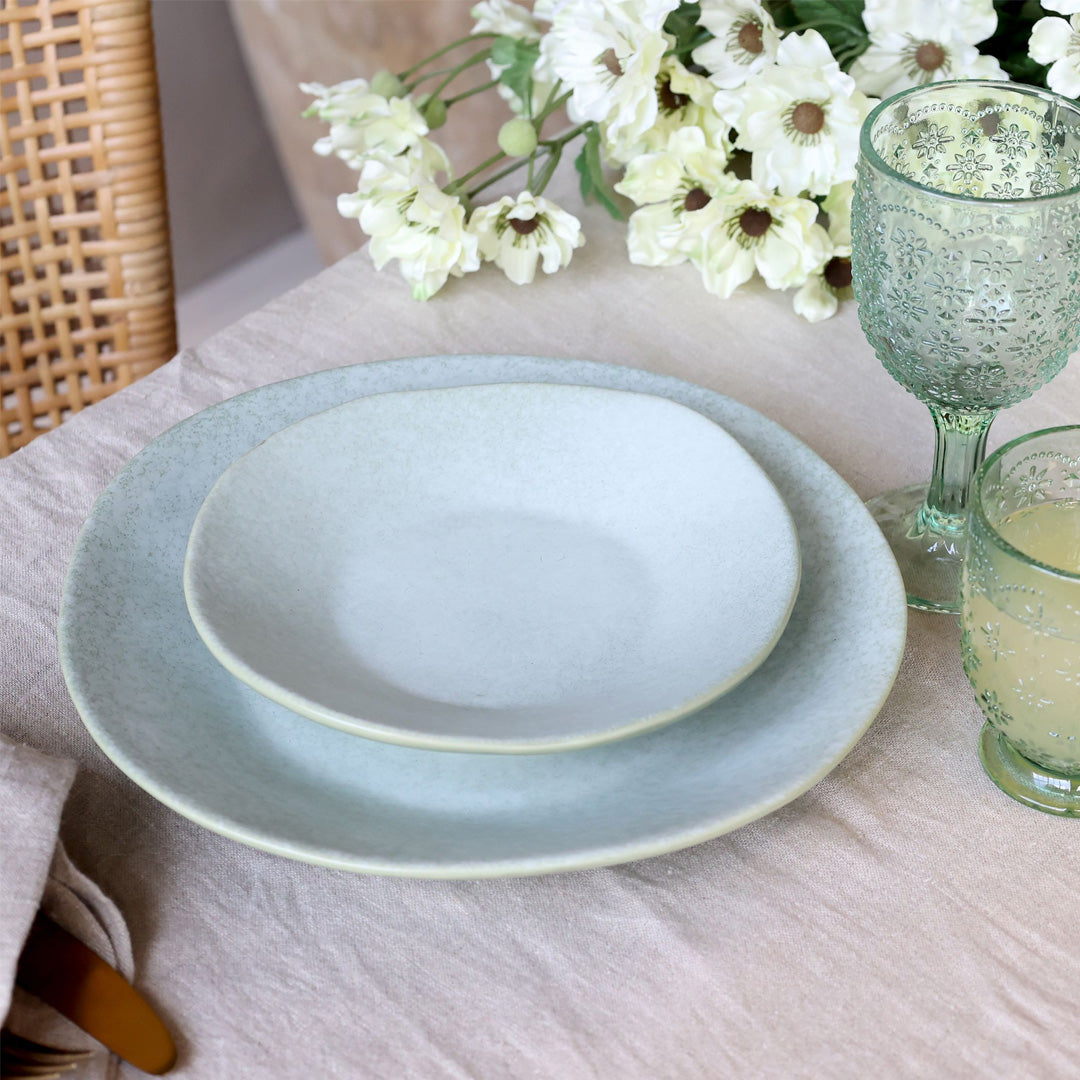 Die Teller vereinen nordische Schlichtheit mit französischem Vintage-Charme und verfügen über eine reaktive Glasur, die jedem Stück einen einzigartigen Charakter verleiht.