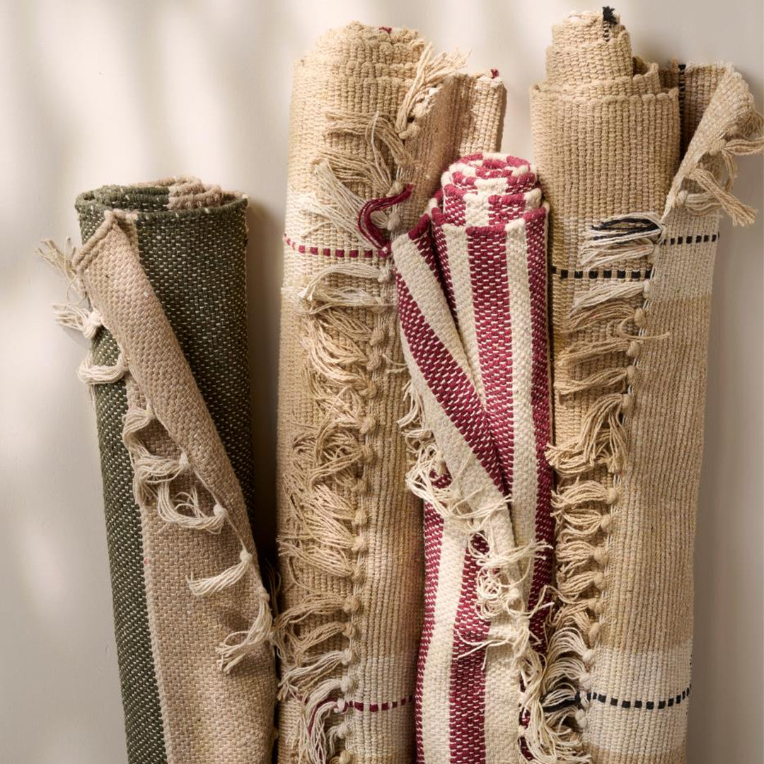 Schaffen Sie Gemütlichkeit und Wärme im Zuhause mit diesem klassischen Läufer aus 100 % Baumwolle. Der cremefarbene Untergrund in Kombination mit roten Streifen verleiht dem Raum ein zeitloses und einladendes Erscheinungsbild, das sowohl in modernen als auch rustikalen Einrichtungen perfekt passt.