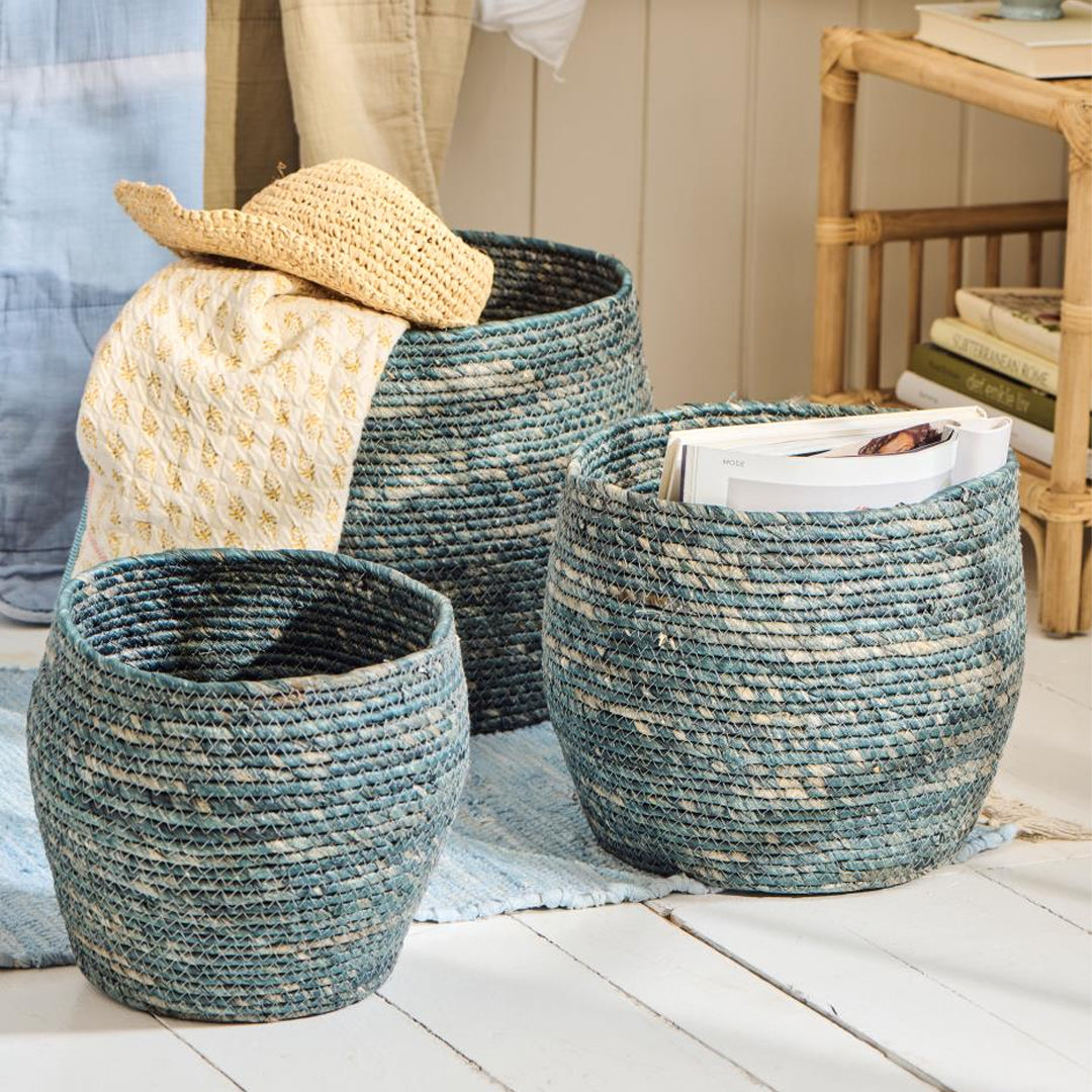 Korbsatz – 3er-Set blaue Körbe aus Mais