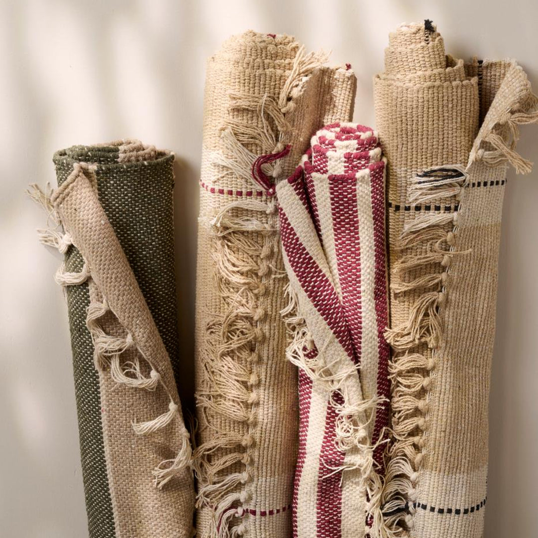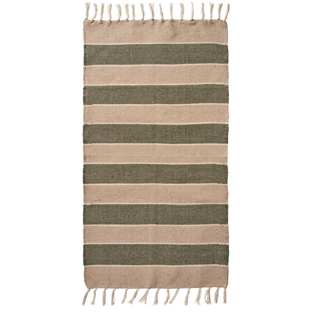 Schaffen Sie Gemütlichkeit und Wärme im Zuhause mit diesem stimmungsvollen Läufer aus 100 % Baumwolle. Die Kombination aus Creme- und Beigetönen mit olivgrünen Streifen verleiht dem Raum einen ruhigen und natürlichen Ausdruck, der sowohl in Küche, Flur als auch im Ferienhaus wunderschön zur Geltung kommt.