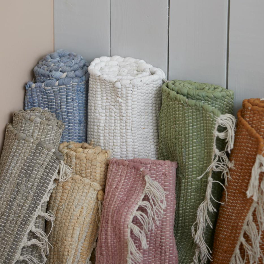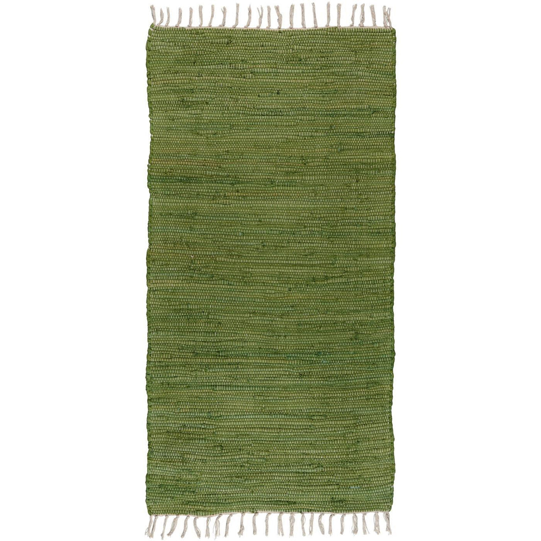 Dieser gemütliche Flickenteppich aus gewebter Baumwolle verleiht dem Raum ein natürliches und ruhiges Erscheinungsbild. Die grüne Farbe schafft eine warme und einladende Atmosphäre, die sich sowohl in moderne als auch in entspannte Einrichtungsstile harmonisch einfügt.