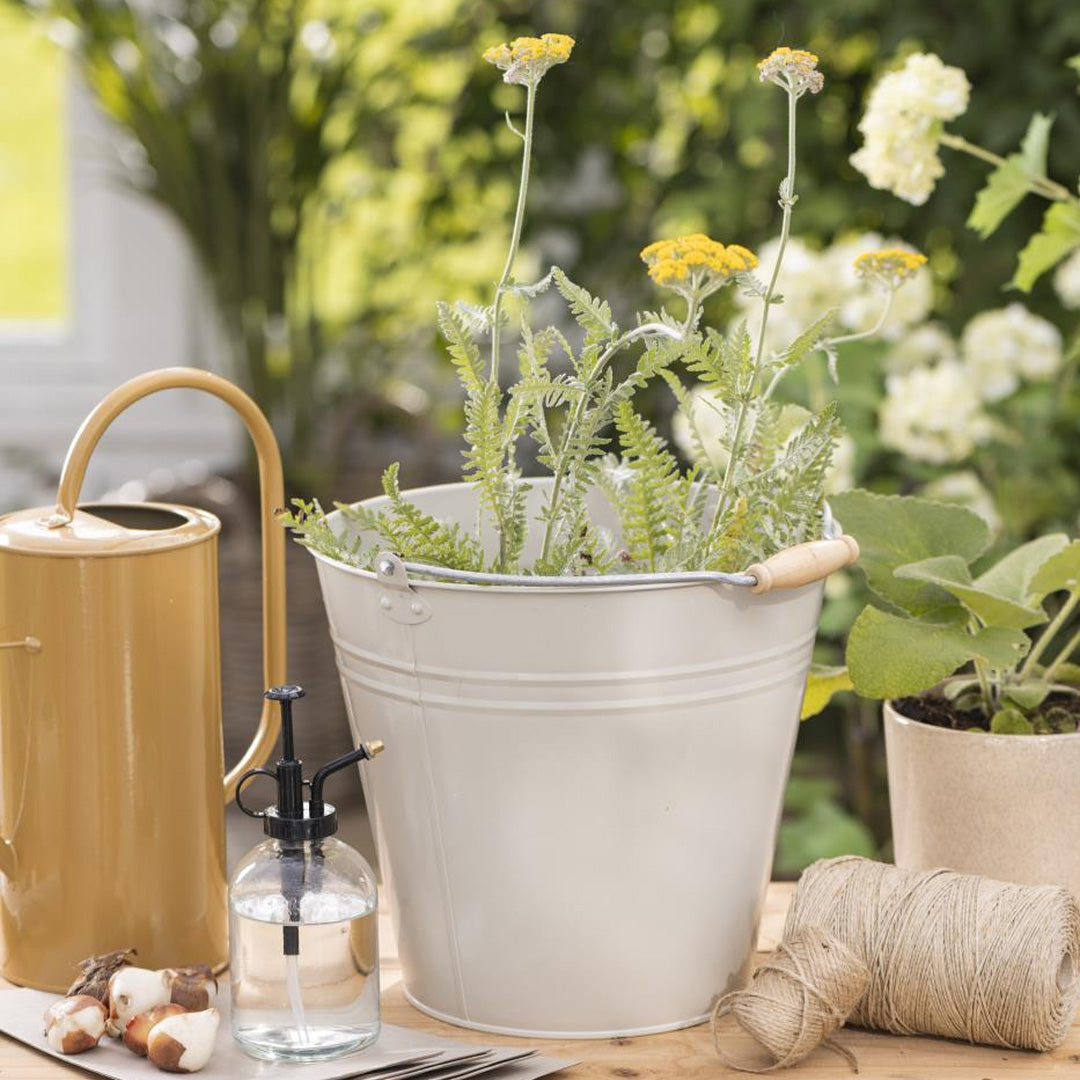 Praktischer und dekorativer Eimer von Ib Laursen im klassischen Design und in zeitloser Cremefarbe. Der Eimer ist aus Metall gefertigt und verfügt über ein großzügiges Fassungsvermögen von 8 Litern, wodurch er sich ideal für Gartenarbeiten, Aufbewahrung und dekorative Zwecke eignet.
