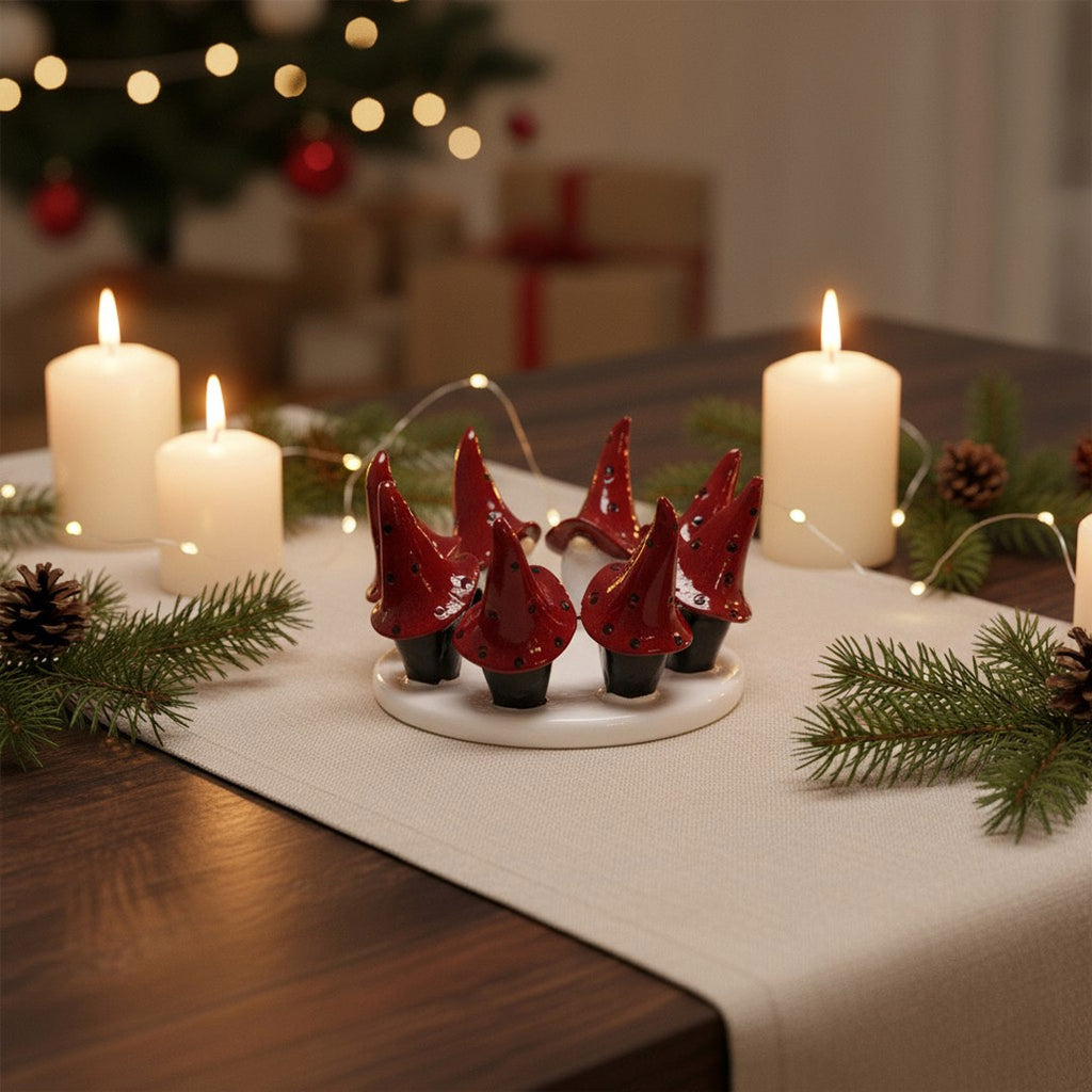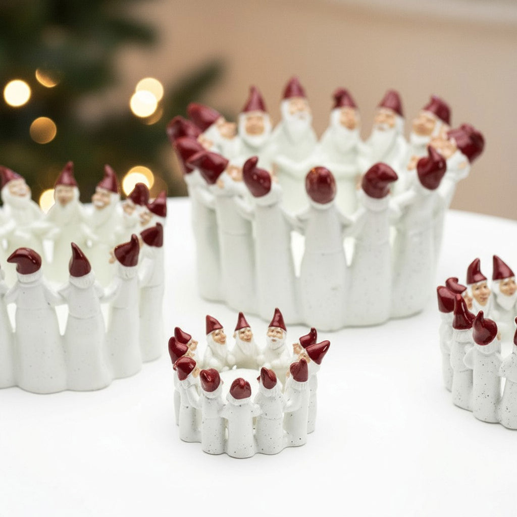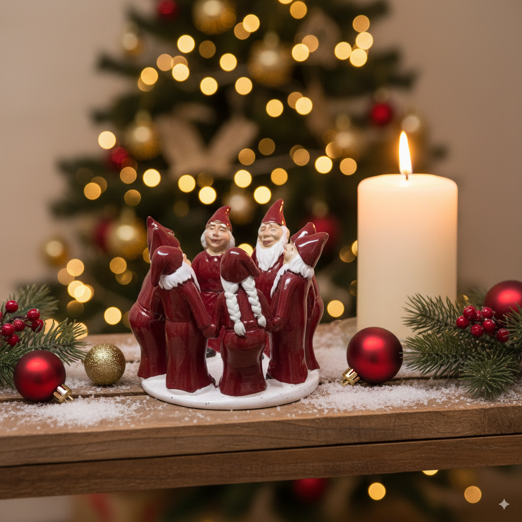 Verleihen Sie Ihrem Zuhause festlichen Glanz: Einfach ein Teelicht in die Mitte setzen – und schon verbreiten die fröhlichen Wichtel ein warmes Lächeln im ganzen Raum.