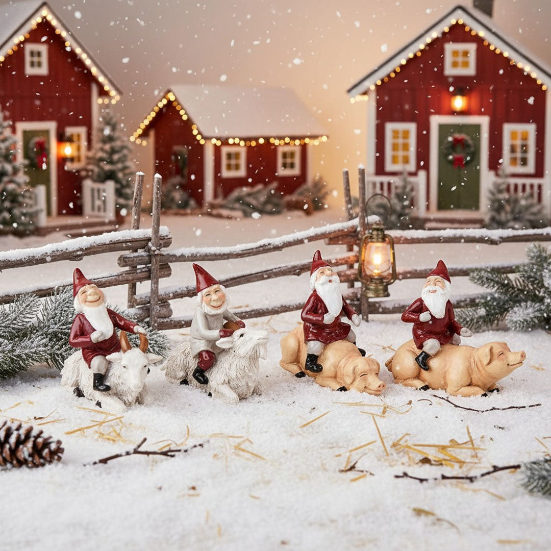 Dieses liebevoll gestaltete 4er-Set von Harvesttime zeigt fröhliche Weihnachtsmänner, die auf niedlichen Schweinen und Schafen reiten. Die humorvollen Figuren bringen skandinavischen Charme und eine Portion Augenzwinkern in Ihre Weihnachtsdekoration.