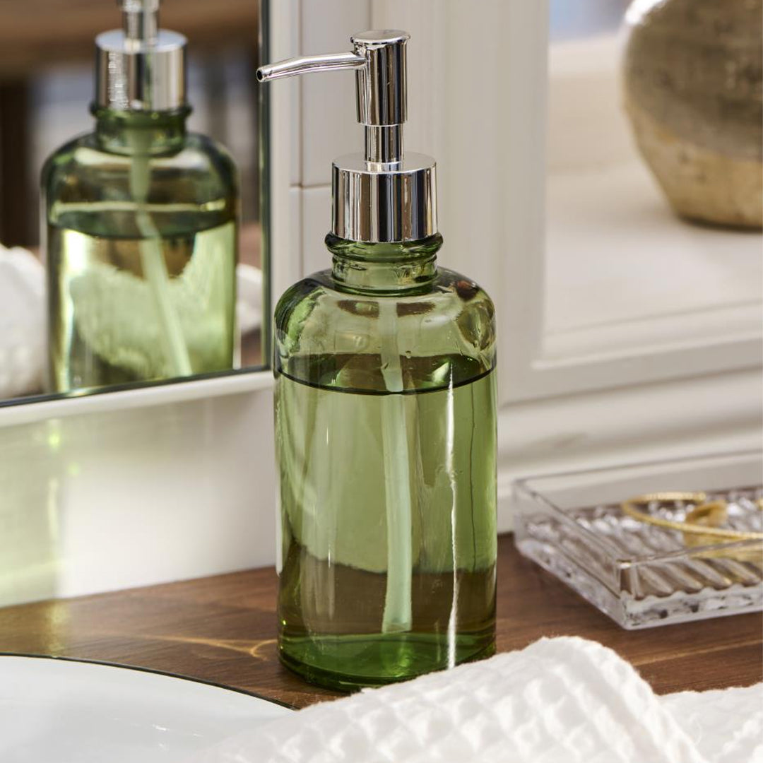 Seifenspender – Grünes Glas mit silberfarbener Pumpe