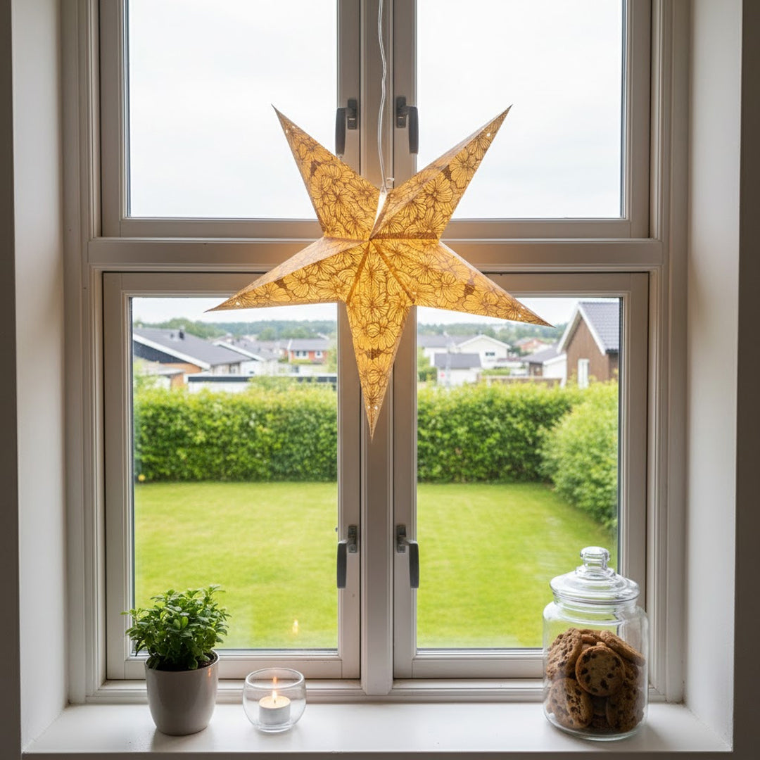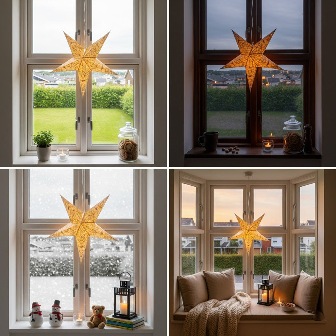 Das zarte Muster und die dezente Farbgebung machen sie perfekt als klassische Fensterlampe, dekorative Beleuchtung oder stimmungsvolle Lichtquelle das ganze Jahr über.