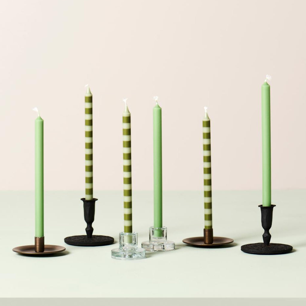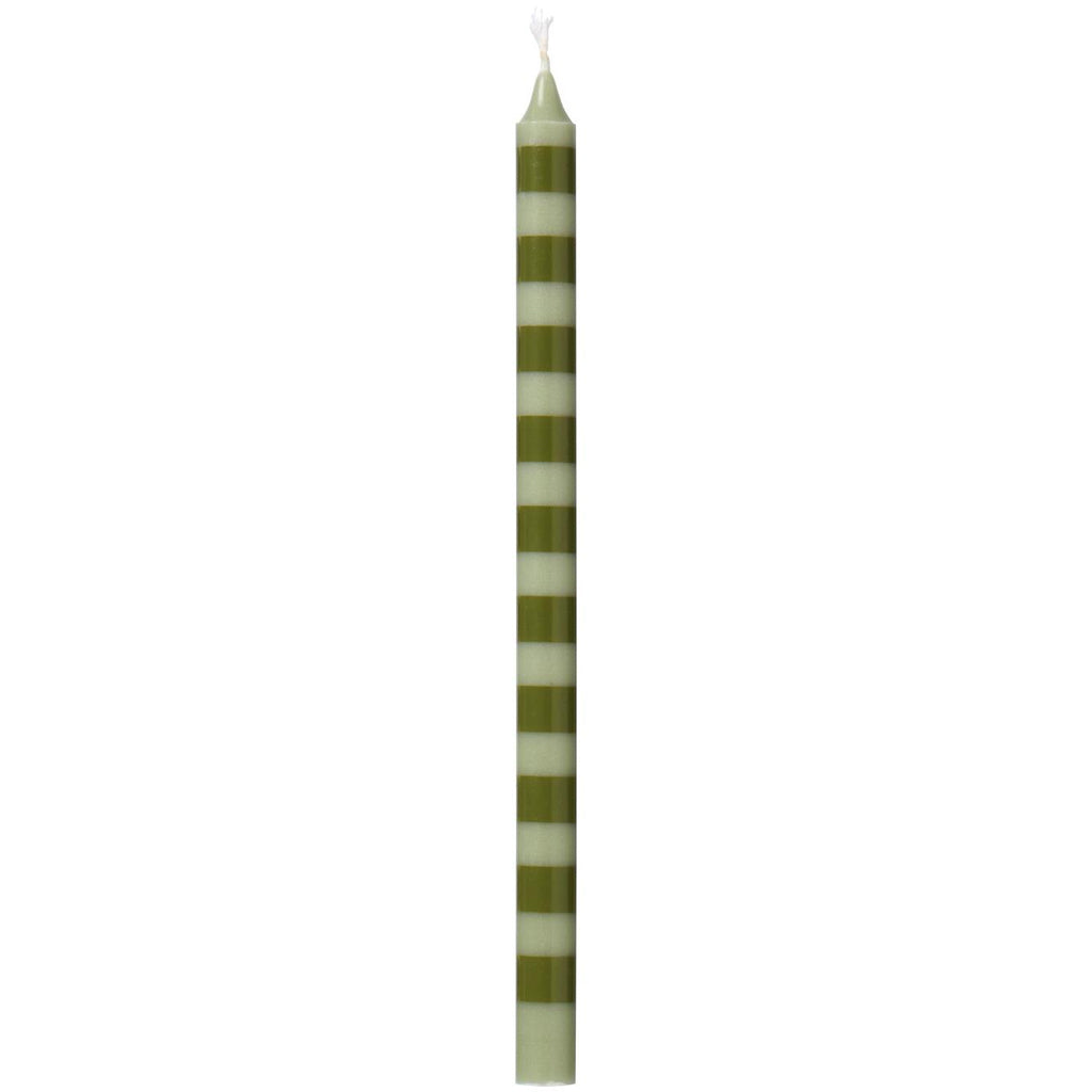Ib Laursen – Stabkerzen 8 Stk., gestreift Olivgrün/Hellgrün Ø 1,3 cm · H 20 cm, mit Umweltzeichen