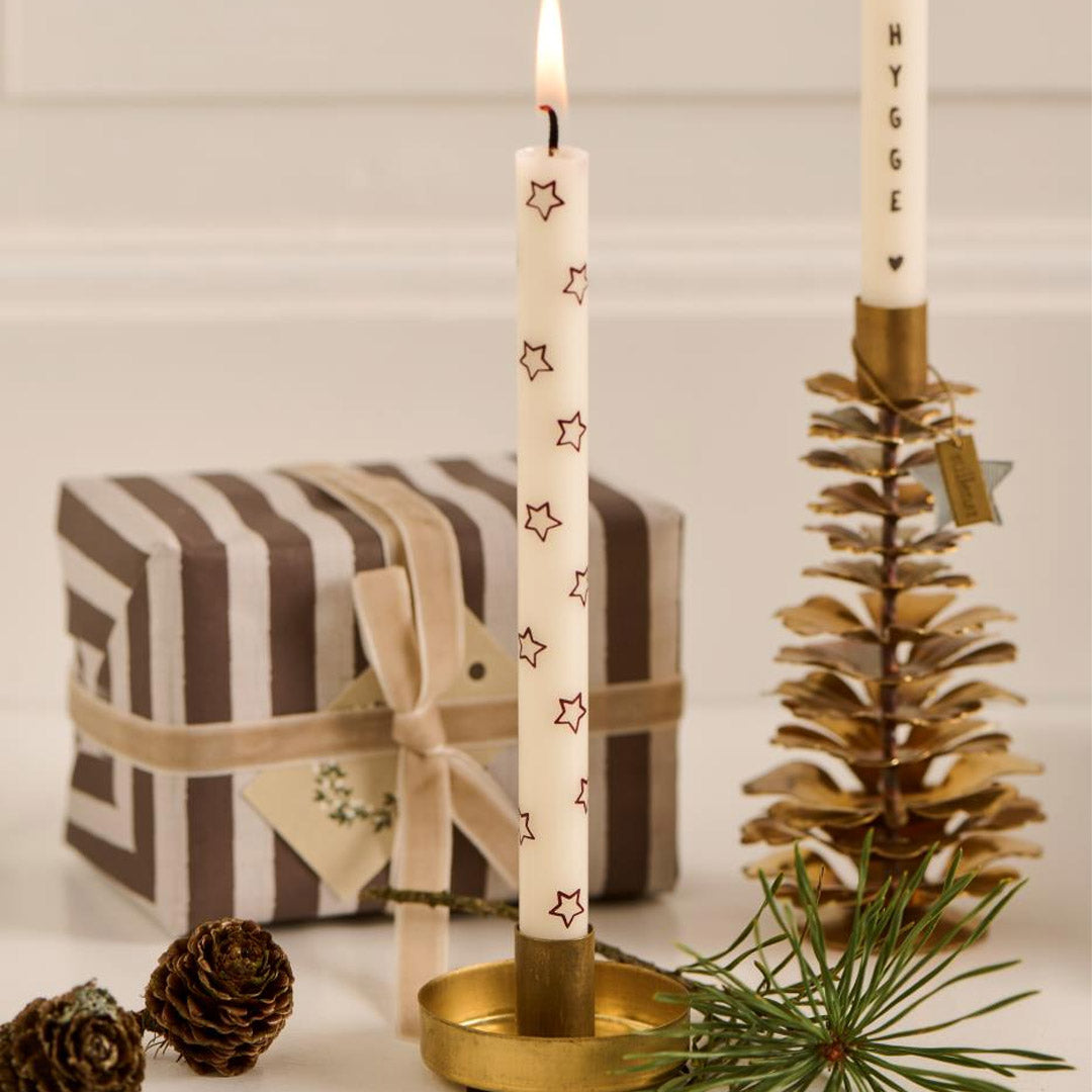 Stumpenkerzen 8 Stück mit braunen Sternen – Ø 1,3 cm, H 20 cm, svanemærket