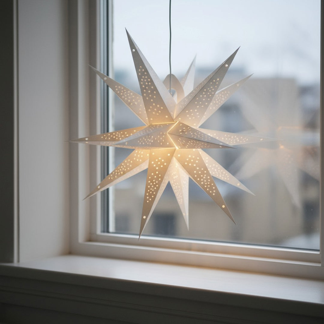 Kombinieren Sie den Stern mit einer E14-Fassung (separat erhältlich), um ein warmes, beruhigendes Licht durch das feine Papier strahlen zu lassen.