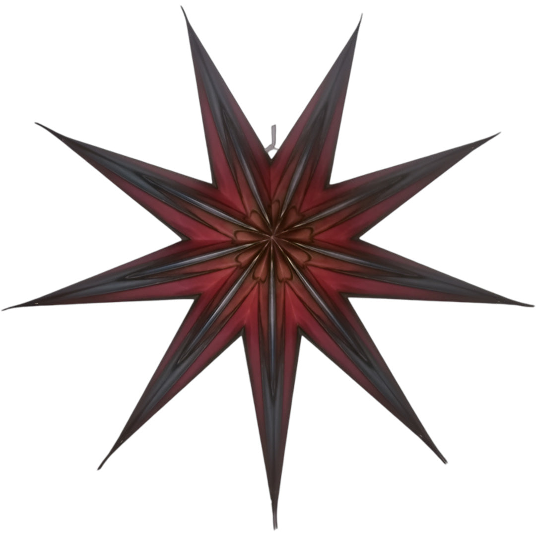 Schaffen Sie Atmosphäre und Charakter mit dem Moonmind Kiran Papierstern – einer handgefertigten, neunzackigen Lampe in dunklem Rot und Schwarz.
