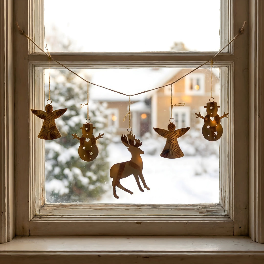 Messing-Girlande mit 5 Weihnachtsornamenten