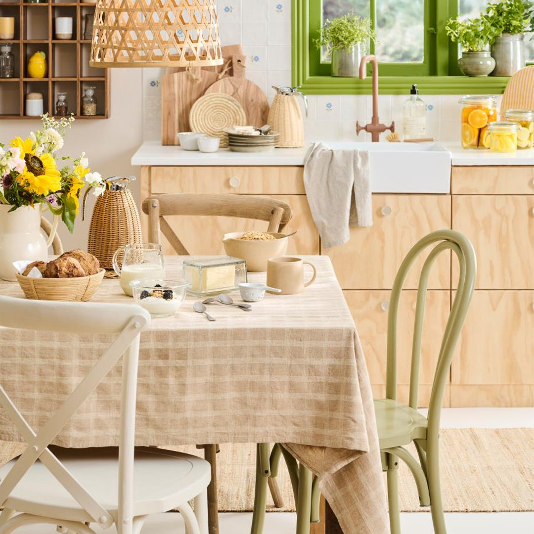 Stilvolle, quadratische Tischdecke in naturfarbener Ton-in-Ton-Karo-Optik, die dem Tisch eine ruhige und natürliche Ausstrahlung verleiht. Die ausgewogene Textilmischung sorgt für eine weiche Qualität mit guter Strapazierfähigkeit und einem leichten, entspannten Fall. Ideal für den Alltag ebenso wie für gemütliche Dinner.