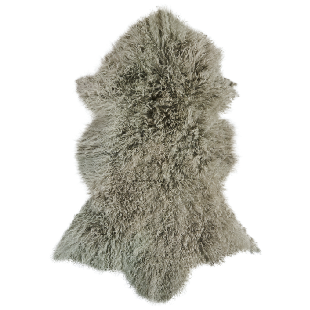 Tibetisches Lammfell von Ib Laursen in einer schönen, dezenten Graunuance, die Ruhe und Eleganz in die Einrichtung bringt.