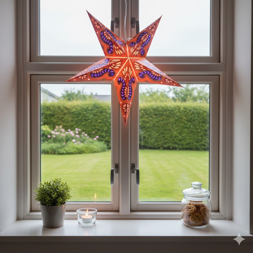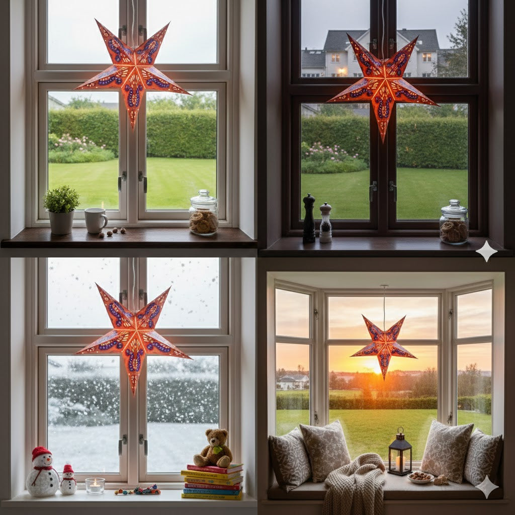 Perfekt für Fenster, Wohnzimmer oder als dekorative Beleuchtung an gemütlichen Abenden – ein harmonisches Zusammenspiel aus indischem Kunsthandwerk und nordischem Design.