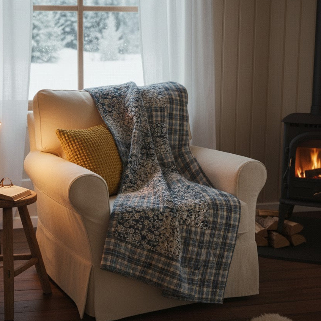 Patchwork Steppdecke Handgequiltet Dunkelblau (130 × 180 cm)