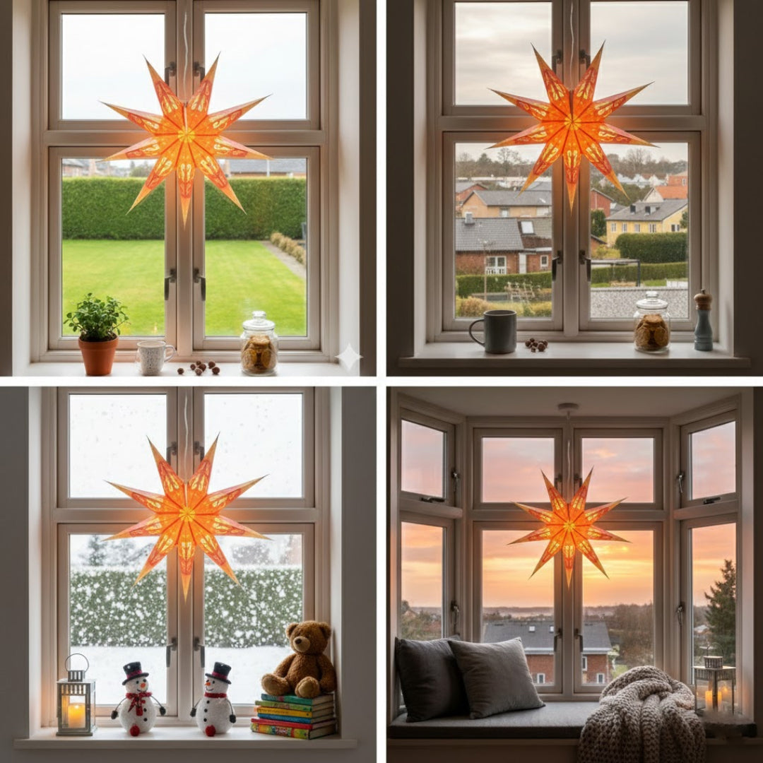 Sobald die Lampe eingeschaltet ist, verbreitet sie einen wunderschönen goldenen Schimmer, der Ruhe und Glanz in Ihr Zuhause bringt – perfekt für das Fenster, das Wohnzimmer oder als stimmungsvolle Weihnachtsbeleuchtung.