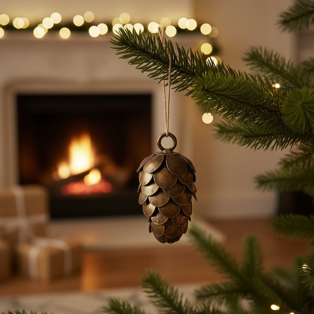 Ornament Kiefernzapfen aus Metall zum Hängen