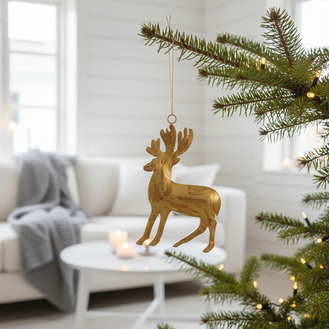 Der Messinghirsch ist ein elegant handgefertigtes Ornament, das klassisches Design mit einem warmen, goldenen Ausdruck verbindet. Die stilisierte Hirschfigur besteht aus echtem Messing und zeigt feine Details sowie eine natürliche, nordische Anmutung.