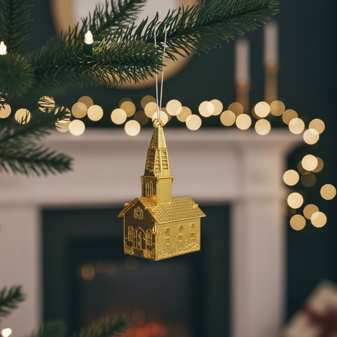 Weihnachtsanhänger „Messingkirche“ – 3 × 5 × 6,5 cm – zum Hängen