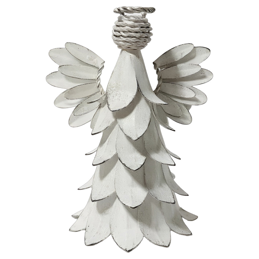 Rustikale Engel-Figur aus Metall – Höhe 35 cm (Weiß)
