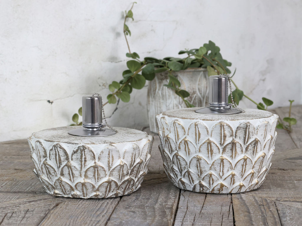 Chic Antique Öllampe – Groß | H11 x Ø18 cm | Creme mit Goldmuster