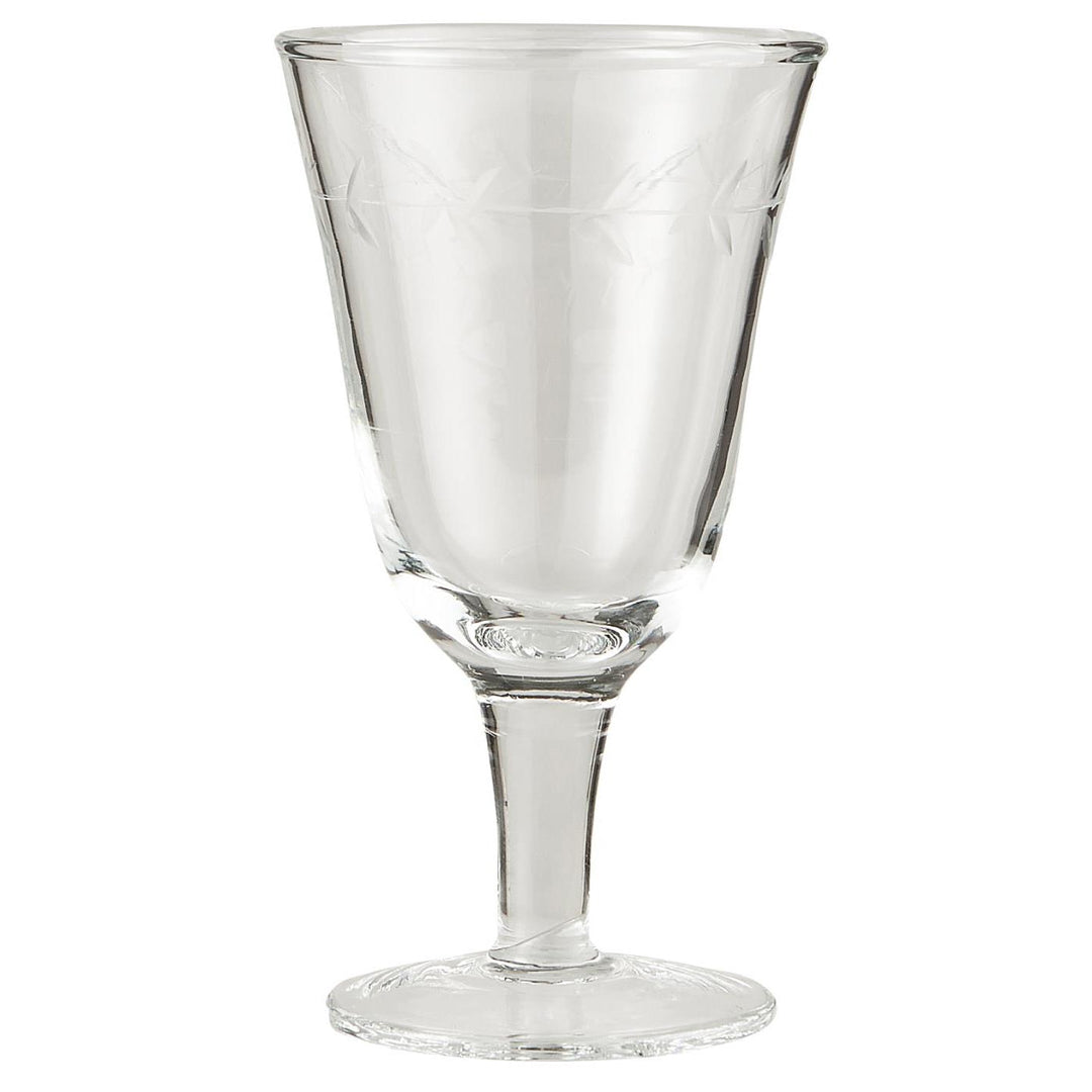 Elegantes Set aus 6 Weißweingläsern aus mundgeblasenem Glas, jedes mit einem dekorativen Rankenrand am Glasrand. Die Gläser wirken leicht und zeitlos und passen sowohl für den täglichen Gebrauch als auch für festliche Anlässe. Die Form hebt das Aroma des Weins hervor und sorgt für eine ansprechende Präsentation.