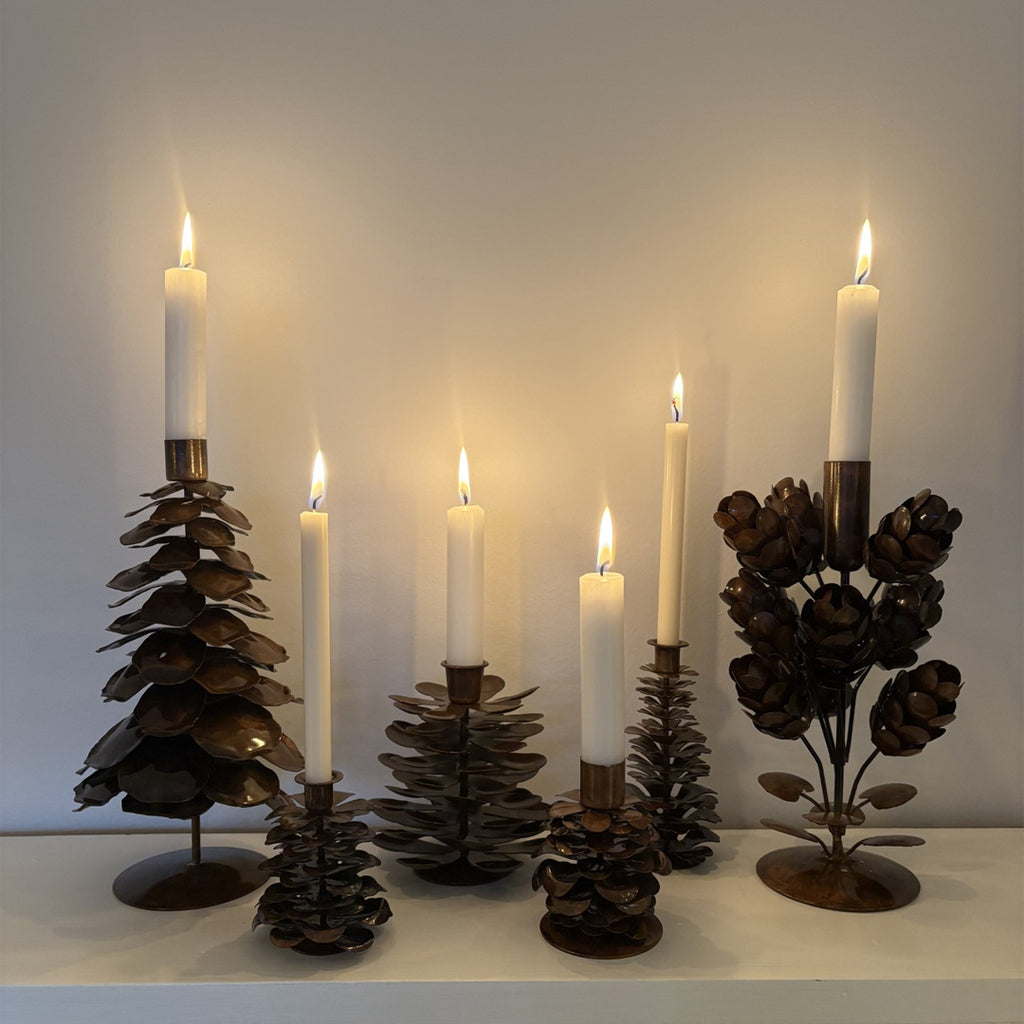 Die dunklen Bronzetöne und die leicht patinierte Oberfläche verleihen dem Set einen warmen, rustikalen Charakter, der perfekt in eine nordische oder klassische Einrichtung passt. Die unterschiedlichen Höhen sorgen für Dynamik und Balance – ob zusammen auf dem Tisch arrangiert oder einzeln im ganzen Haus verteilt.