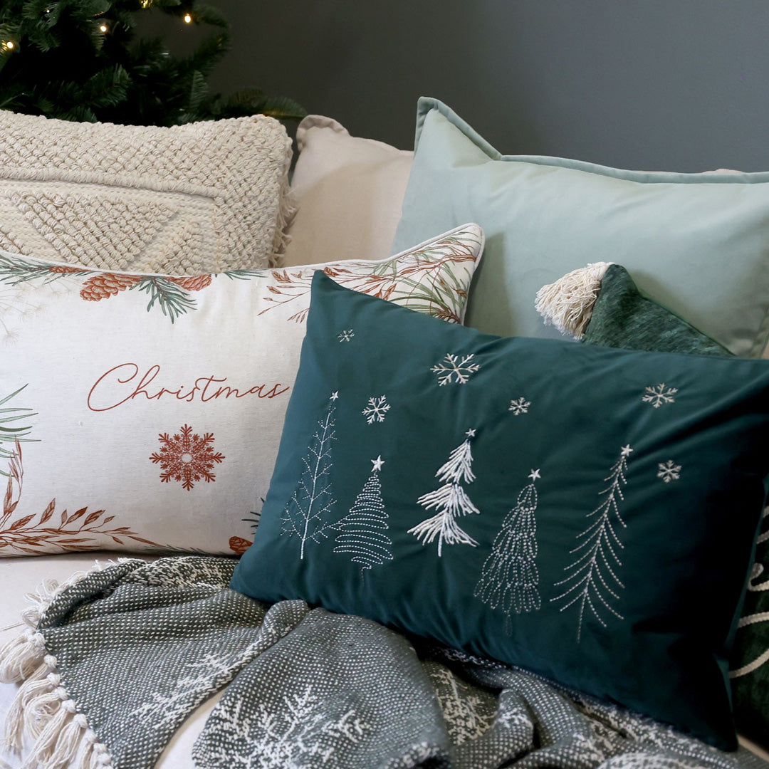 Weihnachts Kissenbezug aus Velours mit Stickerei – Moosgrün 50×35 cm