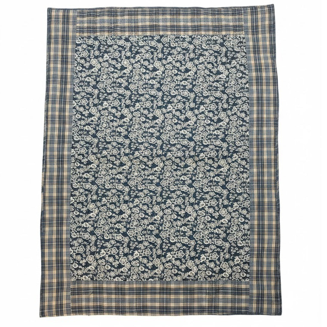 Patchwork Steppdecke Handgequiltet Dunkelblau (130 × 180 cm)