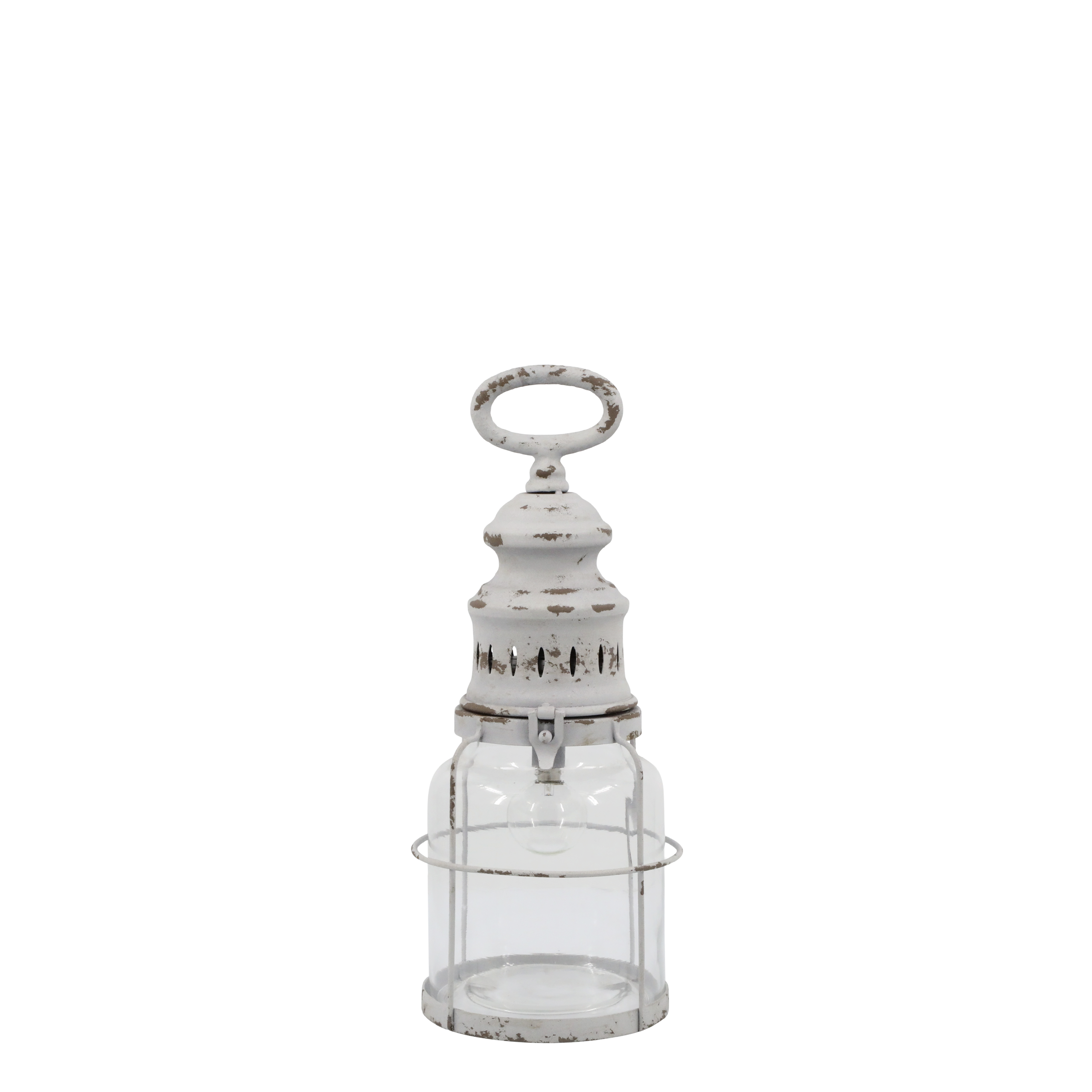 Chic Antique - Französische Stalllaterne in Antik-Weiß mit LED & Timer H32 × Ø12 cm