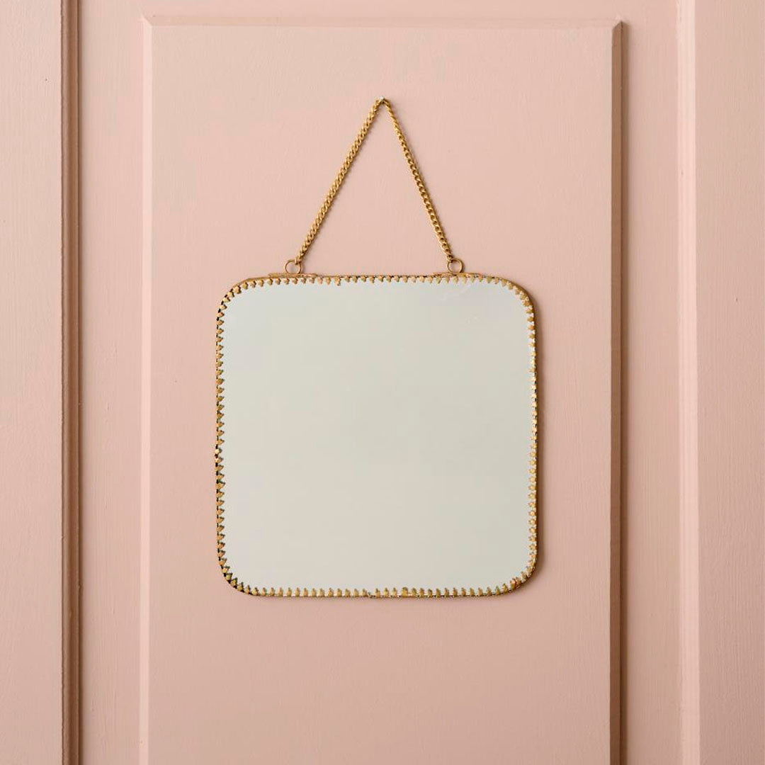 Dekorativer Spiegel mit Kette, perfekt zum Aufhängen an der Wand als elegantes und funktionales Element im Zuhause. Das schlanke Design eignet sich sowohl für kleine als auch für große Räume und verleiht der Einrichtung einen stilvollen Akzent.