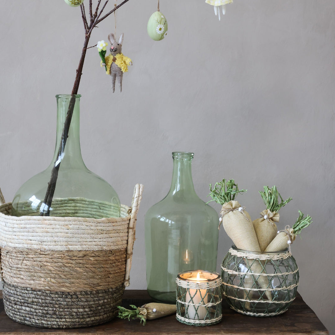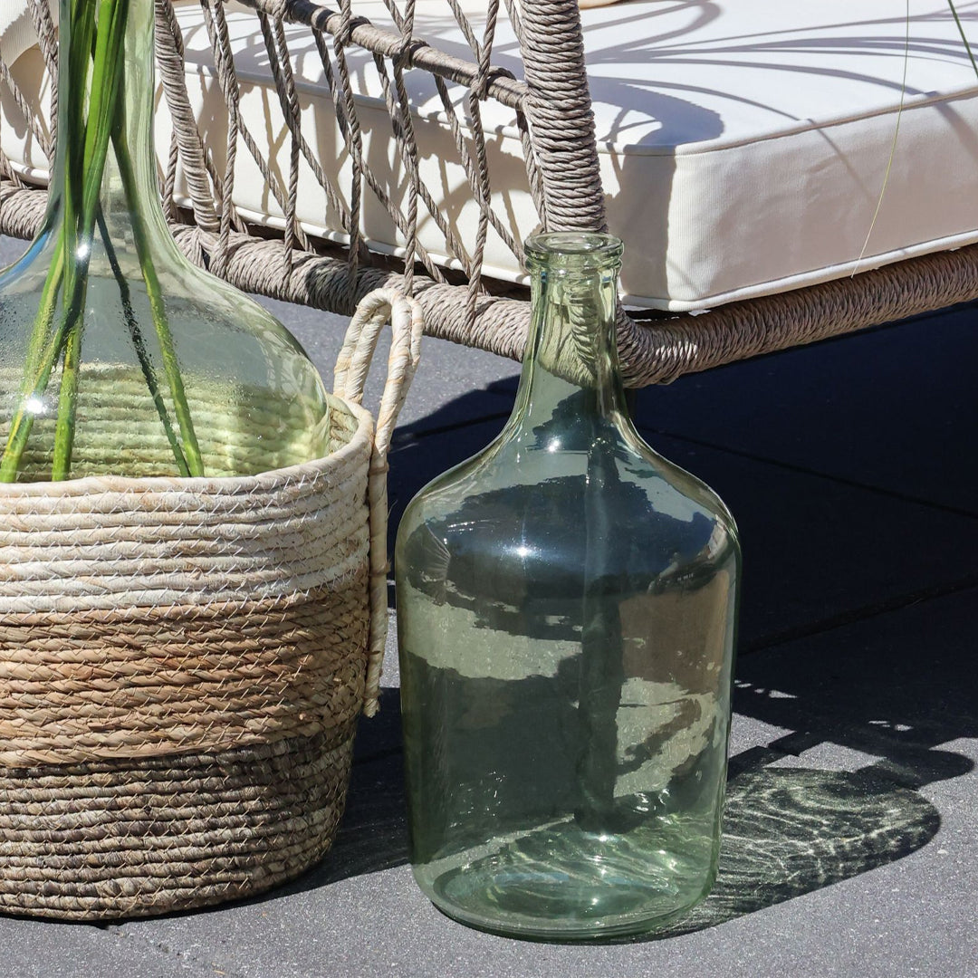 Mit ihrer großzügigen Größe eignet sich die Flasche ideal als Bodenvase für lange Zweige, Trockenblumen oder dekorative Halme. Sie kann auch auf einer Bank, einem Beistelltisch oder im Eingangsbereich platziert werden, um eine natürliche und harmonische Atmosphäre im Raum zu schaffen.