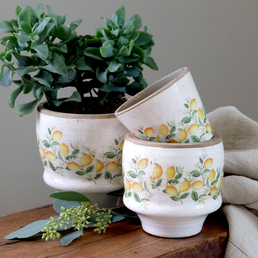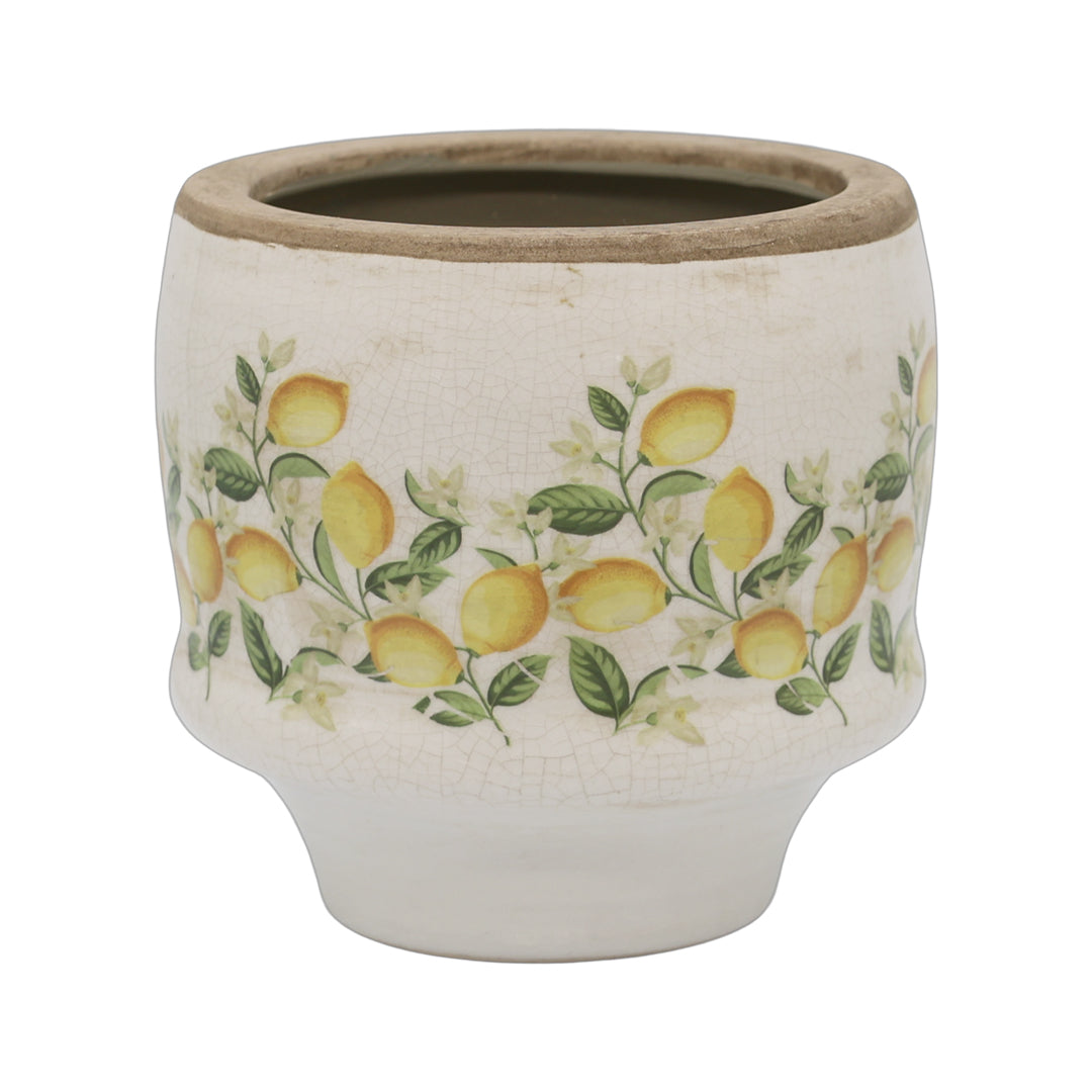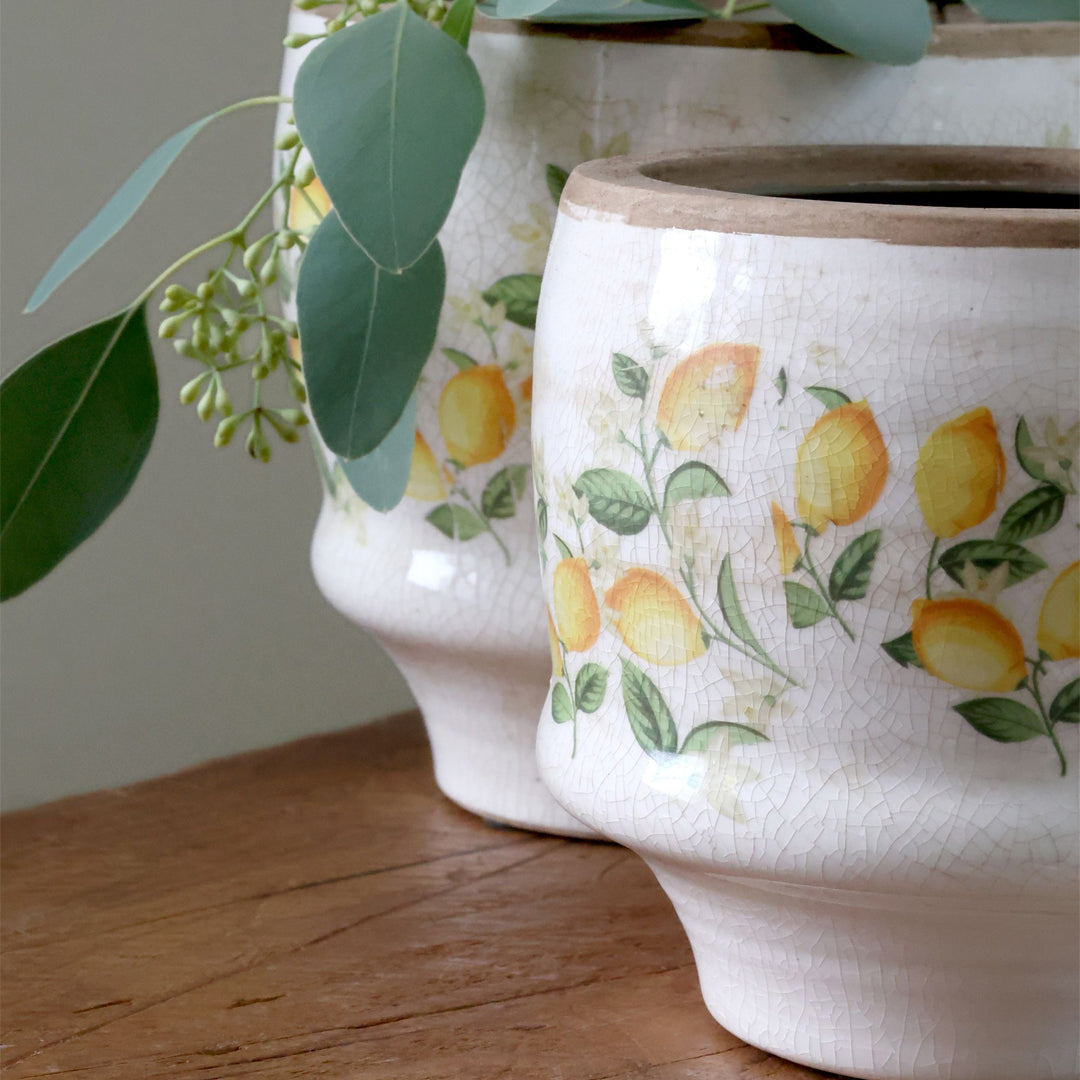 Limone Blossom Übertopf mit Zitronen und Blumen – Klein