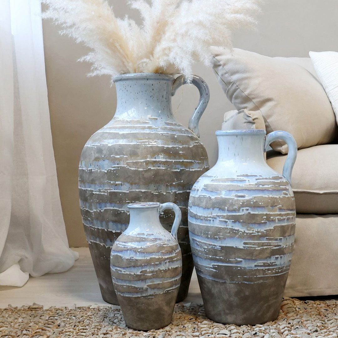 Dank ihrer großzügigen Größe eignet sich die Vase besonders gut für große Blumenarrangements, dekorative Zweige oder Trockenblumen. Sie wirkt besonders eindrucksvoll auf dem Boden, im Eingangsbereich oder als markantes Element im Wohnraum.