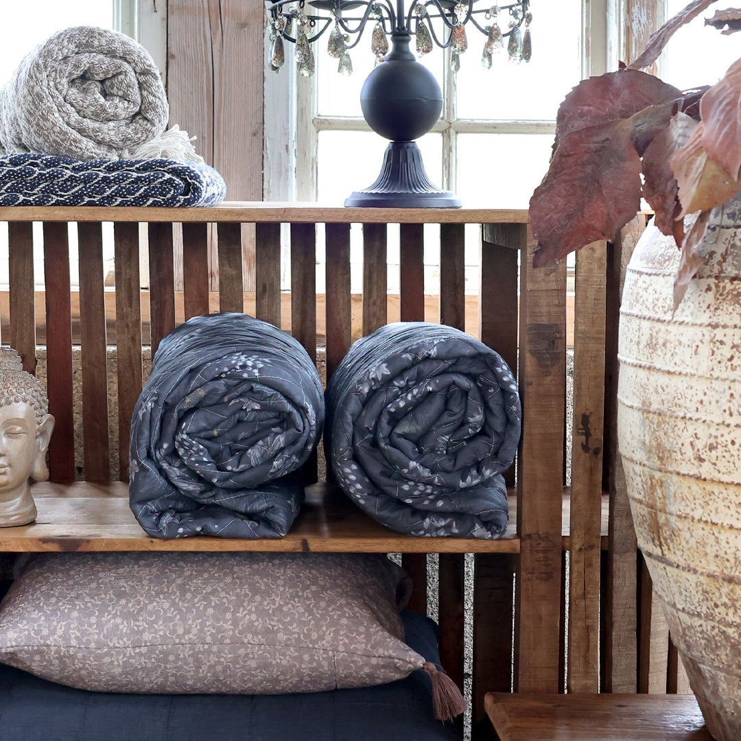 Aix Vintage Quilt – Baumwolldecke mit Blumenmuster im Midnight-Vintage-Look