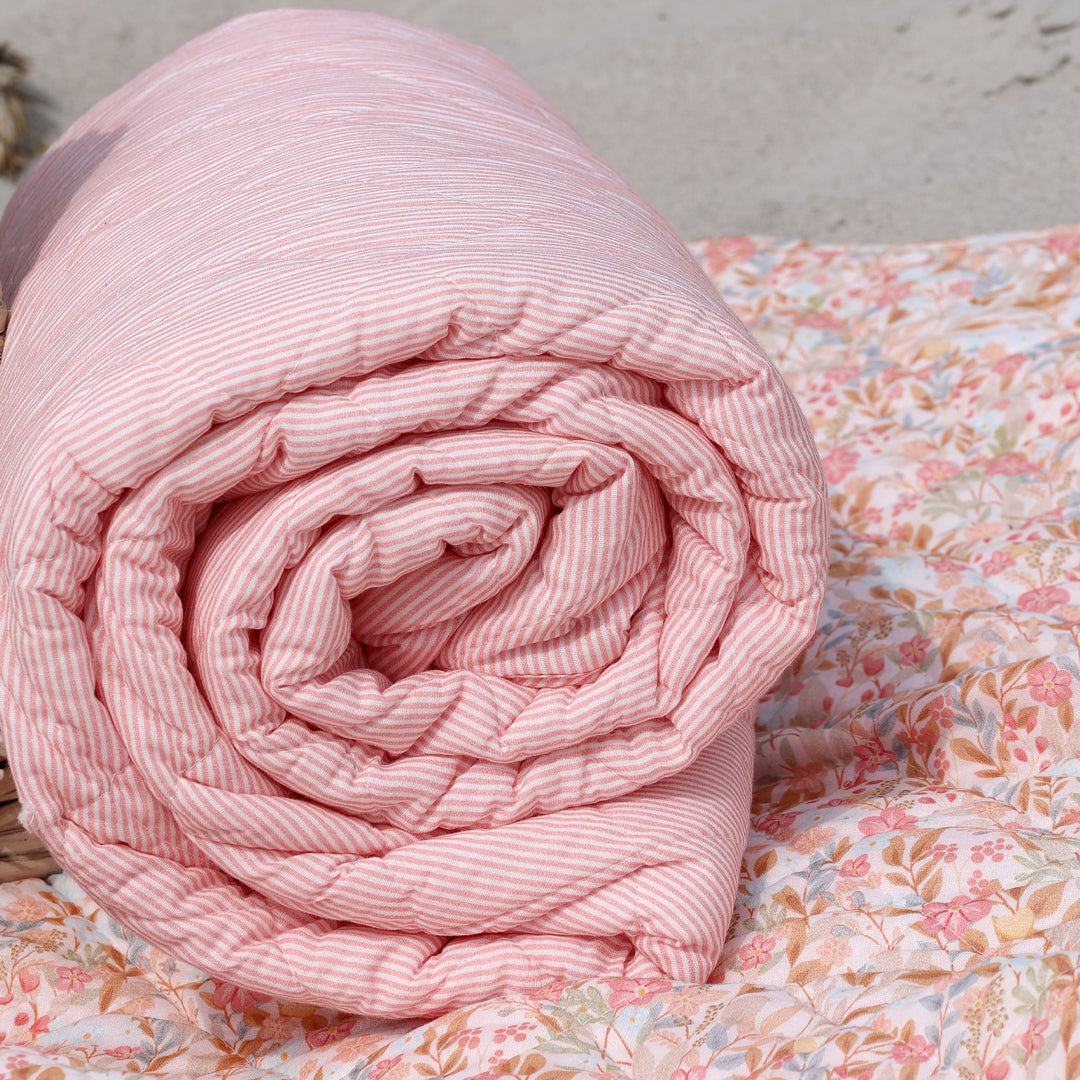 Aix Vintage Quilt – Baumwolldecke mit Milchjungenstreifen in Rosa und Weiß