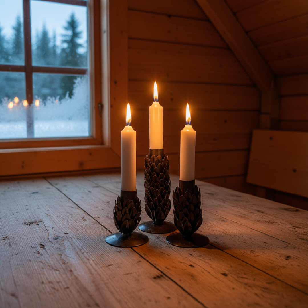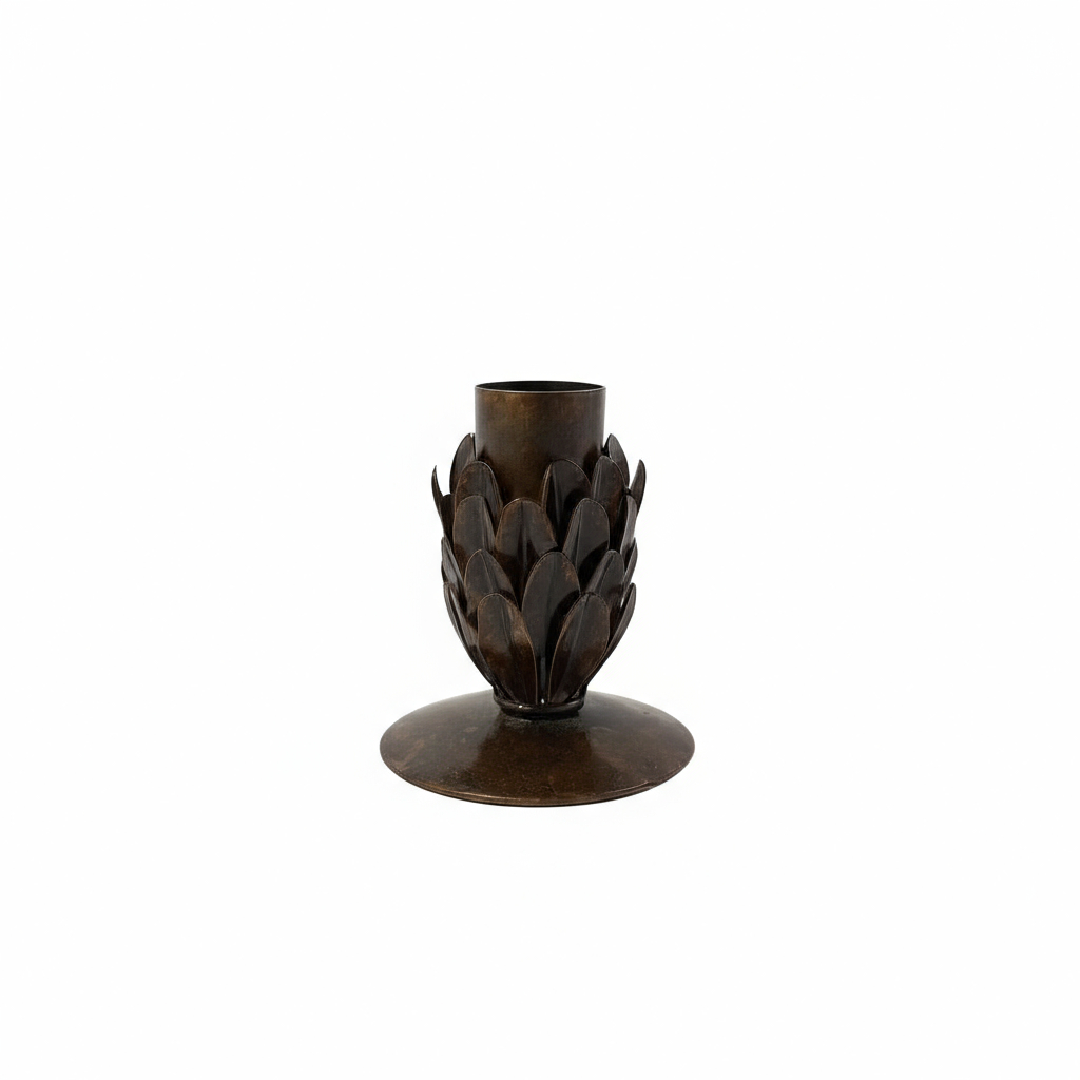 Kleiner Kiefernzapfen-Kerzenhalter aus lackiertem Metall – 7 cm