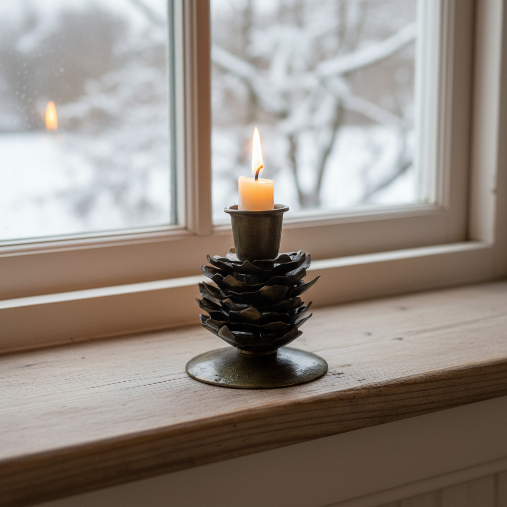 Kleine zapfenförmige Kerzenhalterung aus lackiertem Metall – 7 cm