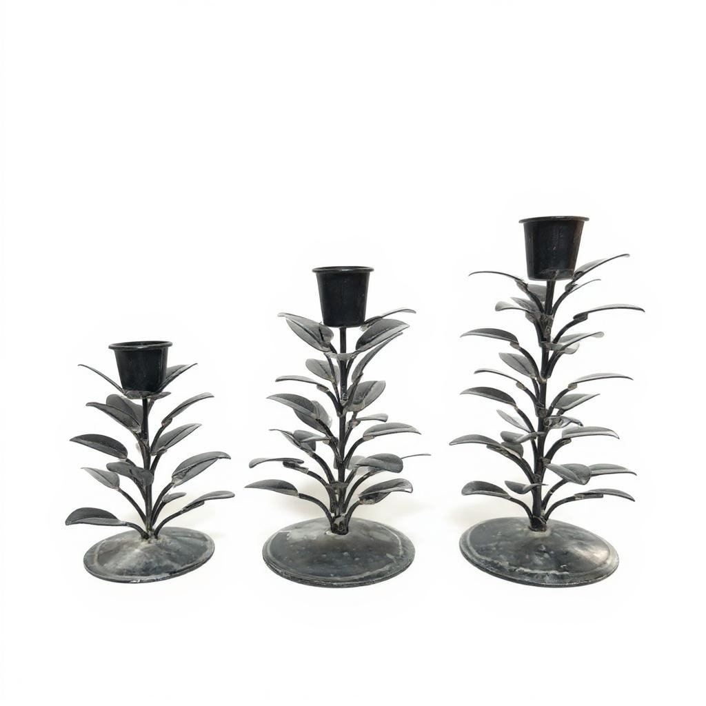 Set aus 3 blattförmigen Kerzenhaltern aus Metall – Höhen 10 / 12,5 / 19 cm