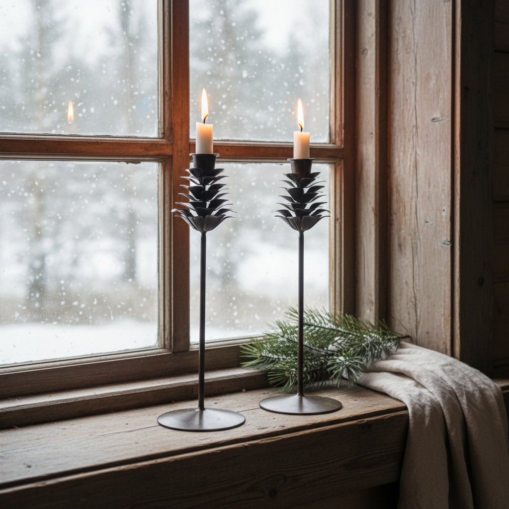 Ihre hochwertig wirkende, dunkel patinierte Oberfläche verleiht ihnen einen rustikal-eleganten Ausdruck, der ideal zu skandinavischem Wohnstil, Landhausdekor, Naturdekoration, Adventsarrangements und klassischer Winterdeko passt. Ob einzeln platziert oder als harmonisches Duo: Die Kerzenhalter wirken auf Fensterbänken, Esstischen, Konsolen und Sideboards gleichermaßen edel.