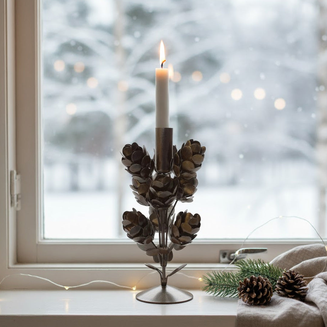 Waldförmiger Zapfen-Kerzenhalter aus lackiertem Metall – 24 cm