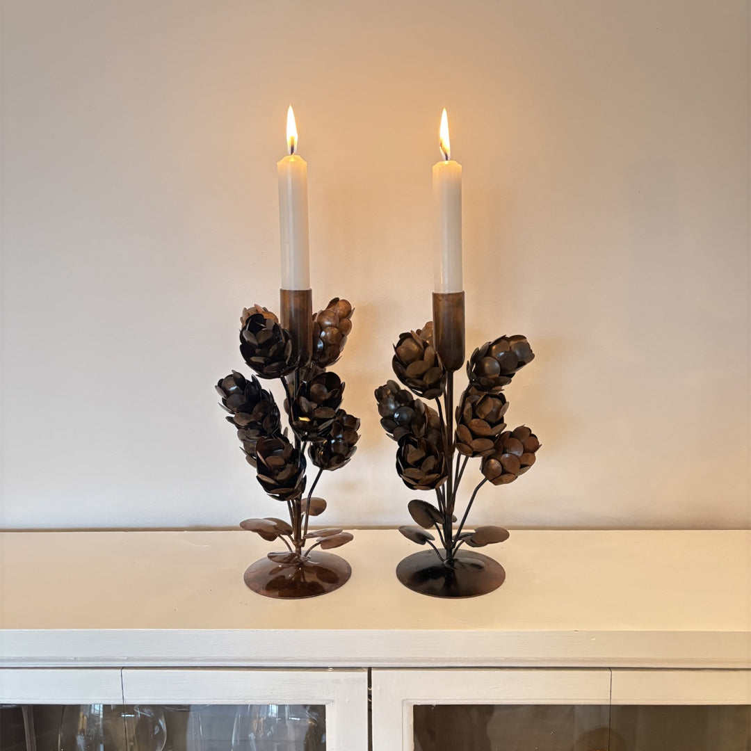Dieser eindrucksvolle, waldförmige Zapfen-Kerzenhalter verbindet natürliche Formen mit kunsthandwerklicher Eleganz.