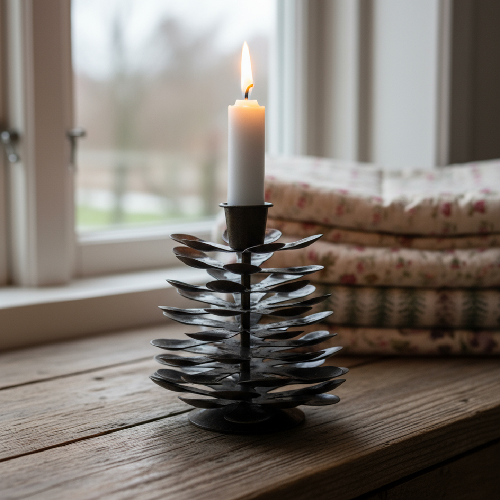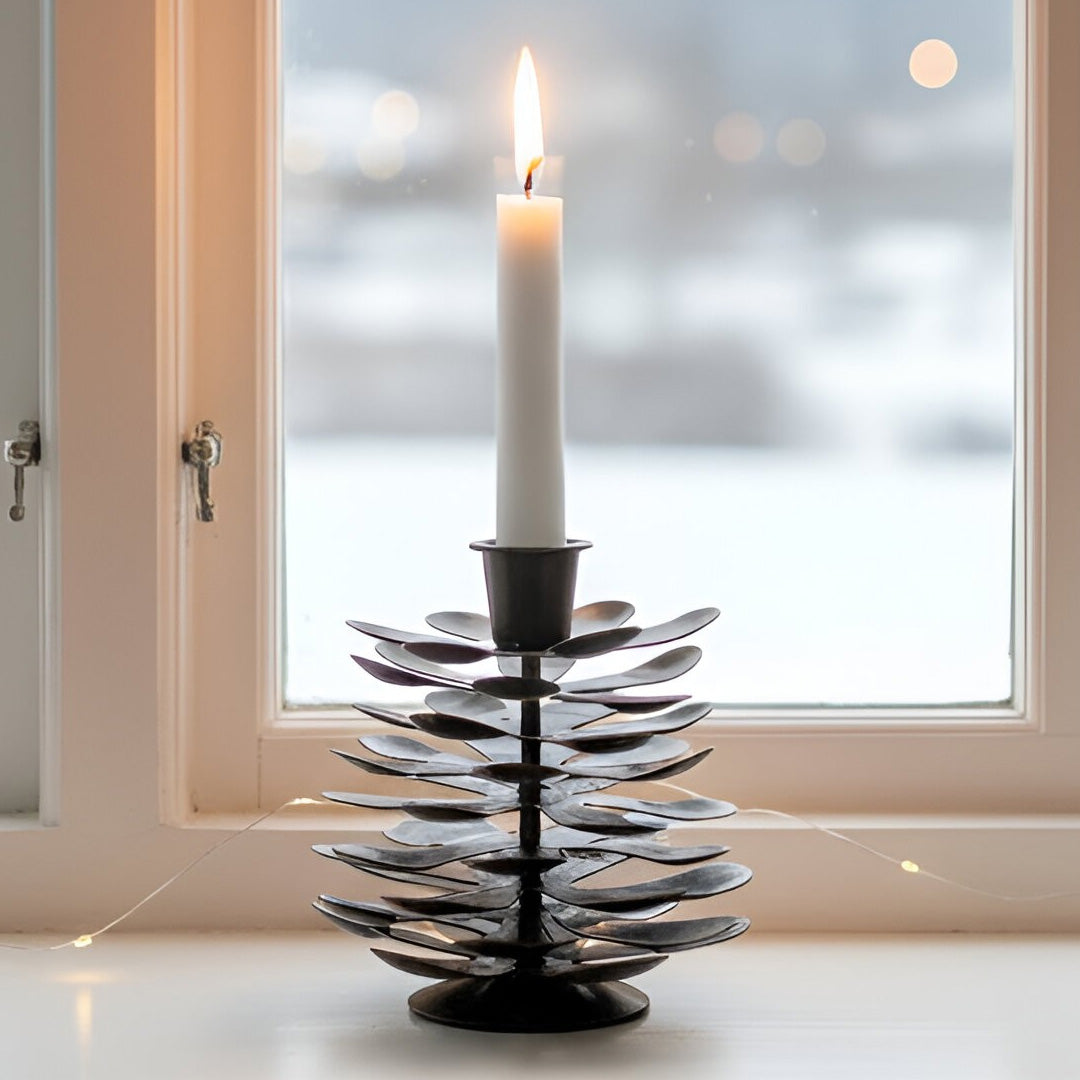Großer kiefernzapfenförmiger Kerzenhalter aus lackiertem Metall – 12 cm