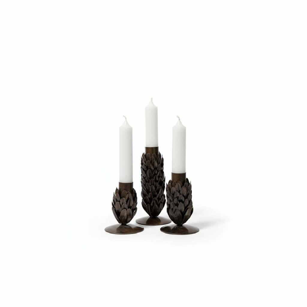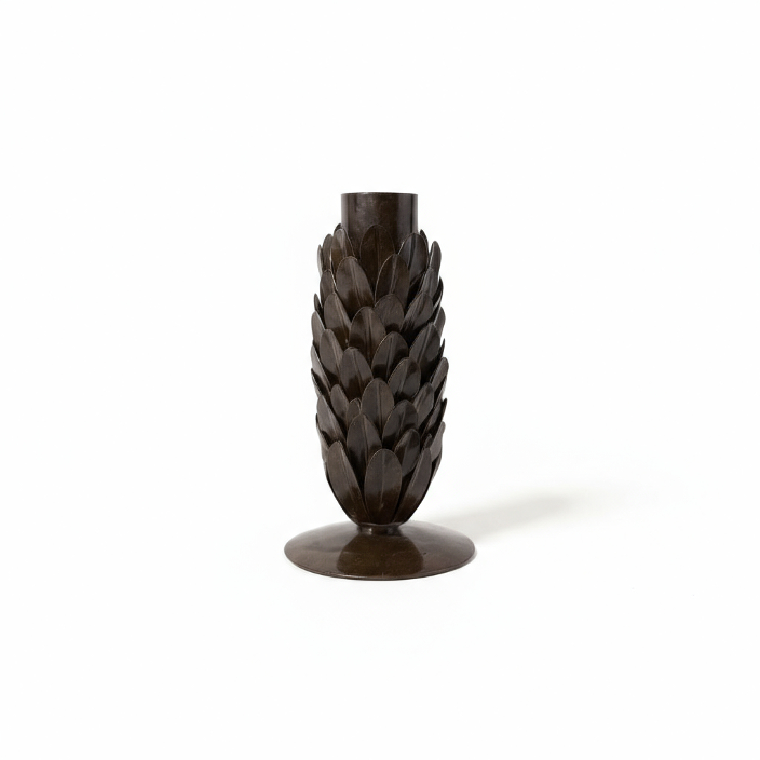 Großer kiefernzapfenförmiger Kerzenhalter aus lackiertem Metall – 13 cm